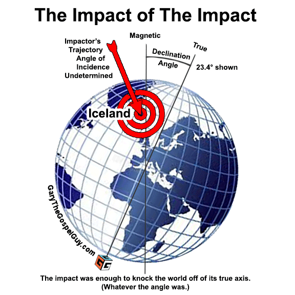 This document presents a technical but simplified look at what might have happened to the orbits of Earth and Moon during Noah’s Flood. It’s based on the idea that a massive object struck Earth—right about where modern-day Iceland is now (around 64°N, 18°W). That Extinction Level Event, I believe, was powerful enough to affect how Earth spins, tilts, and moves around the Sun. It also affected how the Moon orbits the Earth. I will use scientific terms here, but will also try to break them down so anyone can follow along.