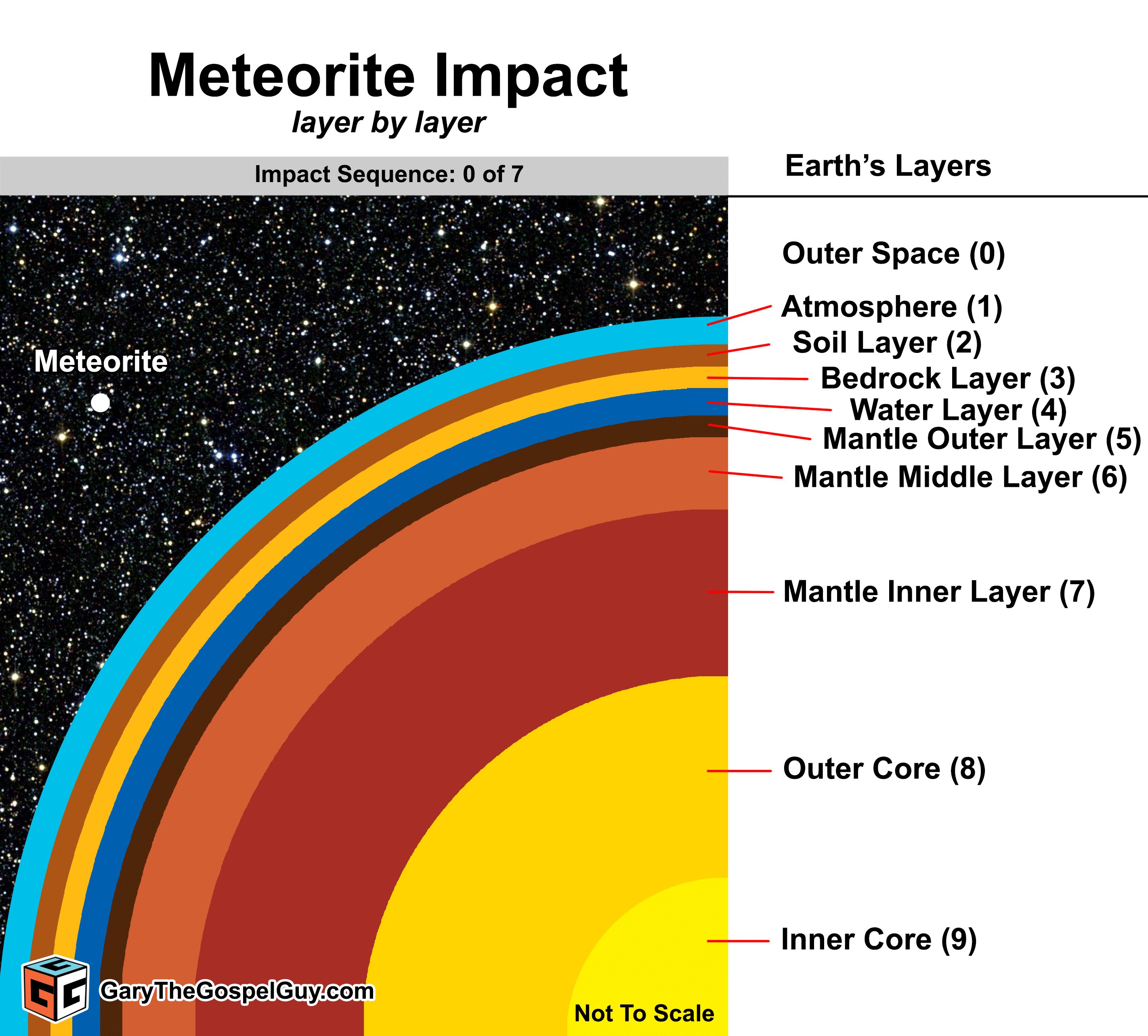 Key Points The meteorite impact did not simply displace material—it set off a catastrophic sequence of explosions.The Soil Layer was vaporized at the impact site, sending a massive fireball and shockwaves in all directions.The impact punctured the Bedrock Layer, exposing the sealed Water Layer beneath for the first time.Superheated water violently expanded into steam, triggering the first in a series of immense explosions.The Mantle was ruptured, allowing lava from the Outer Core to rise and react explosively with the Water Layer.The secondary explosion from lava and water interaction was even more devastating than the initial impact.Steam, water, lava, ash, and debris were ejected high into the sky, choking off sunlight and altering the atmosphere.The Mantle’s destruction caused a global chain reaction, forming Tectonic Plates from the shattered Bedrock.The Pre-Flood Earth’s structure was permanently lost as the world was remade in violent upheaval.